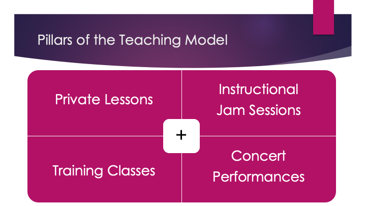 Jam Lab — We offer monthly instructional jam sessions with our pro rhythm section. The songs and progressions are based on material from the training classes. Ahead of each jam, you get a song list, fretboard diagrams, TAB and suggestions for how to solo over each tune. The jams are 90 min coached sessions held on Saturday afternoons at Roots Music Project. Jam Lab is an optional add-on to the core B.G.S. curriculum.
